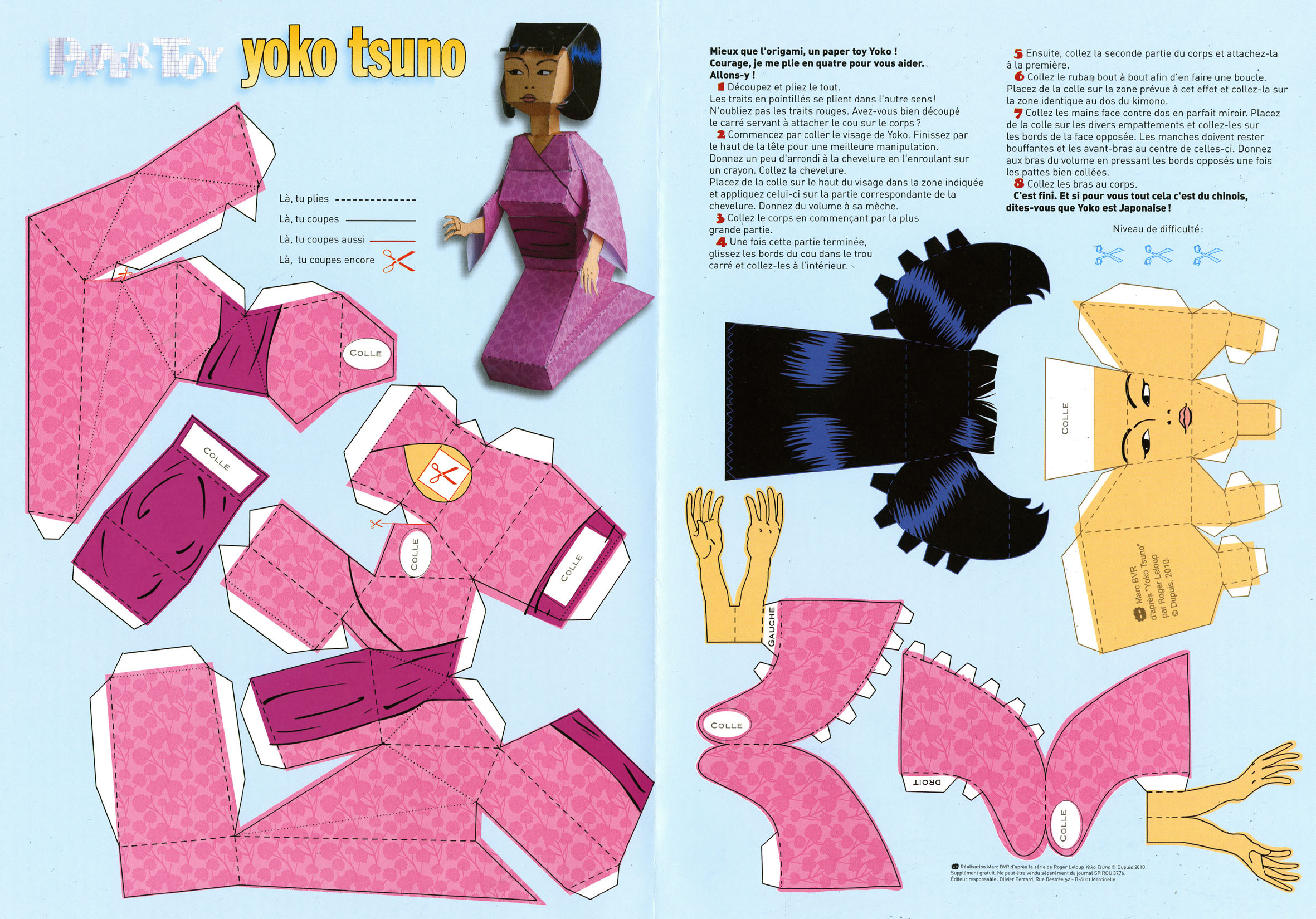 In het Spirou magazine, waar ook het eerste gepubliceerde deel van "De dienares van Lucifer" stond, kon je de handleiding voor een papieren speelgoedje met de afbeelding van Yoko op vinden. Op youtube kan je op het kanaal van Sprirou zelf vinden hoe je het moet maken. |